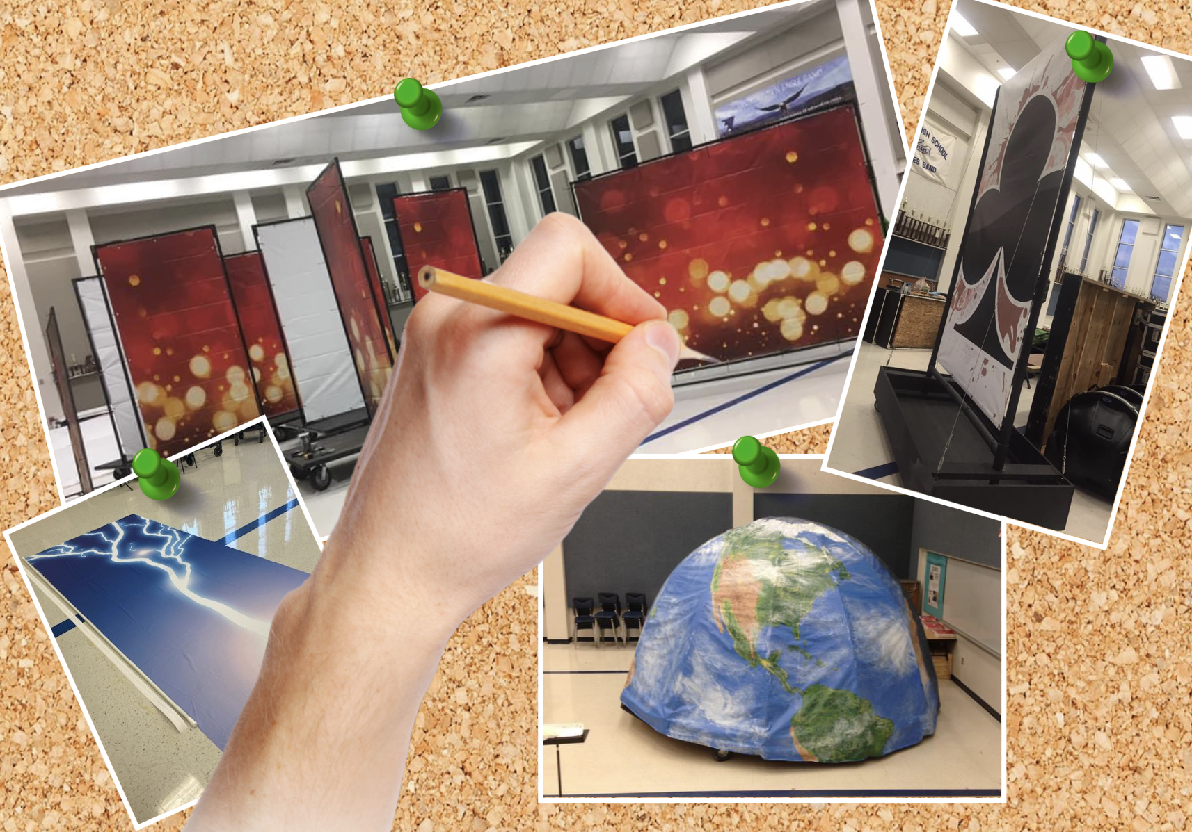 We can design artwork and have it ‘print-ready’ so your company of choice can print your art. This art can be printed to attach to the most common marching arts props. In addition, we are willing to work with staff to design one-of-a-kind prop pieces that can enhance your show design.